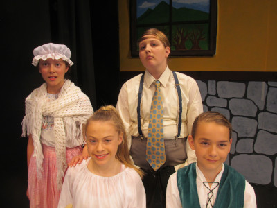 Hansel and Gretel with their parents